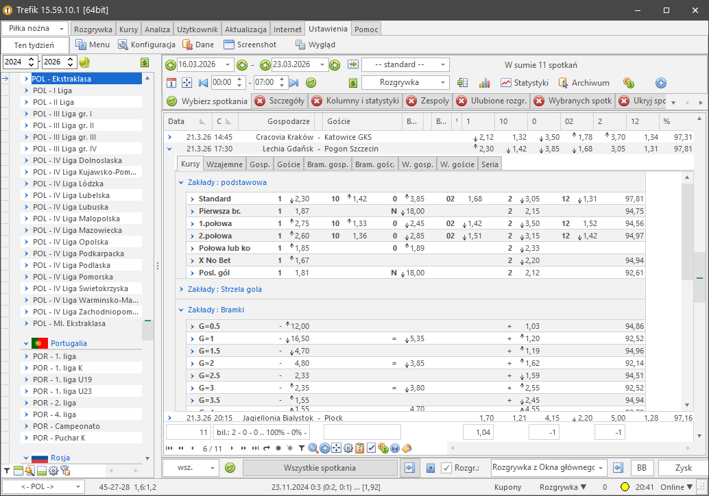 Dane w Trefíku są na bieżąco aktualizowane. Wyniki, strzelcy bramek i kursy meczów. Możesz śledzić, jakie kursy spadają lub rosną i odpowiednio przeglądać swoje typy.