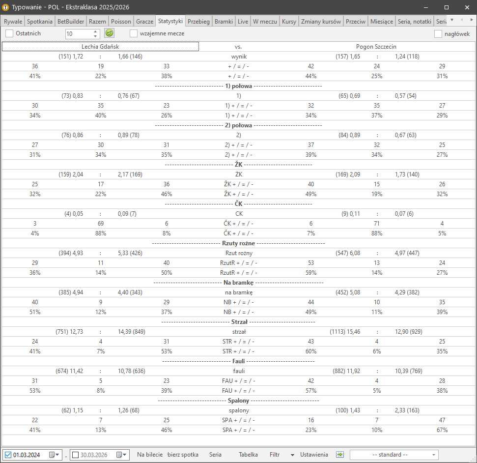 Możesz łatwo dowiedzieć się, jak obie drużyny grały w tej samej sytuacji w przeszłości. Ile razy po bieżącym czasie i/lub wyniku strzelili / zdobyli bramkę, ...